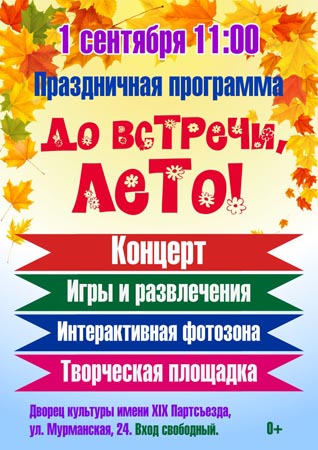 01.09.2025г. в 11:00 во Дворце культуры имени XIX Партсъезда, ул. Мурманская, 24 состоится праздничная программа, посвященная Дню знаний.