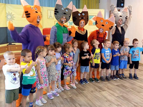 Творческий состав Дворца культуры в образе котов покорил сердца ребят детского сада: вместе играли, танцевали и сопереживали героям.