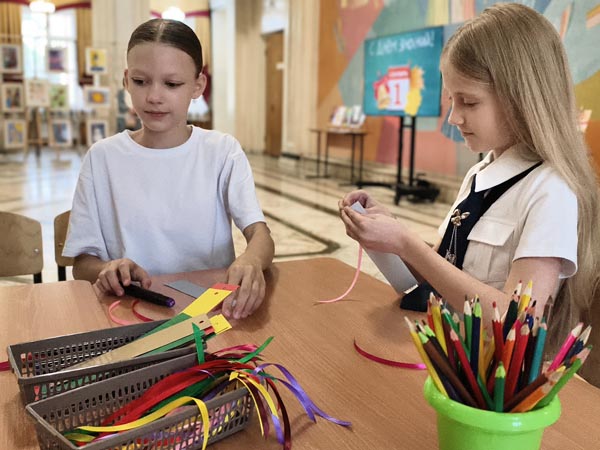 В фойе развернулась интерактивная фотозона и мастер-классы. Дети с большим удовольствием мастерили своими руками полезные аксессуары для школы и каждый юный участник ушел с праздника не только с прекрасным настроением, но и с уникальной самодельной закладкой, которая будет сопровождать его на протяжении всего учебного года.