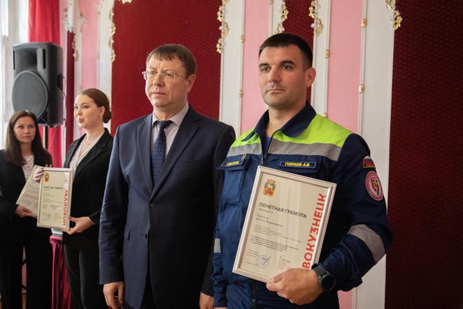 Также в церемонии награждения приняли участие: Первый заместитель Главы города Бедарев Евгений Александрович, начальник Департамента чрезвычайных ситуаций Кузбасса Петр Петрович Яцухно, директор Управления по защите населения и территории Новокузнецкого муниципального округа Вячеслав Анатольевич Есипенко, директор Муниципального бюджетного учреждения управления по защите населения и территории города Новокузнецка Гудков Алексей Фёдорович.