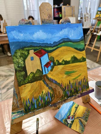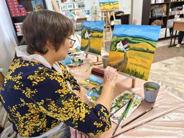 25.09.2025г. в студии для пожилых людей «Рисуем с удовольствием!» Дворца культуры им. XIX Партсъезда, ул. Мурманская, 24 состоялся мастер-класс по акриловой живописи «Осенний прованс».