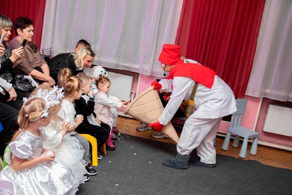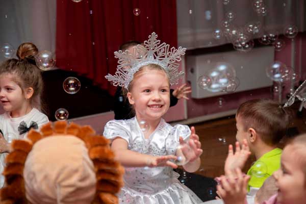 В Дворце культуры была подготовлена особая новогодняя программа для самых маленьких детей. Этот праздник стал настоящим чудом для юных гостей. К ребятам в гости пришел Снеговик, который зажег веселье и радость своими играми. Ярким моментом стало появление сказочной Феи! Она порадовала детей удивительным шоу мыльных пузырей, которые танцевали в воздухе, как настоящие волшебные мечты.