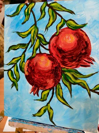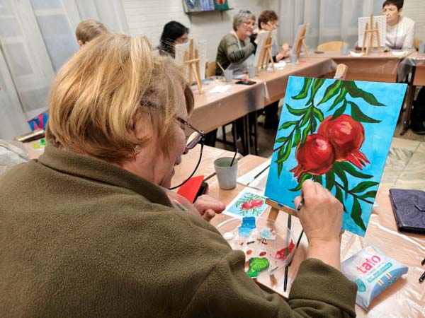 29.01.2026г. в 16:00 в МАУ «МКДК Орджоникидзевского района», СП ДК им. XIX Партсъезда, ул. Мурманская, 24, состоялся мастер-класс по акриловой живописи «Гранаты» в студии для пожилых людей «Рисуем с удовольствием!».