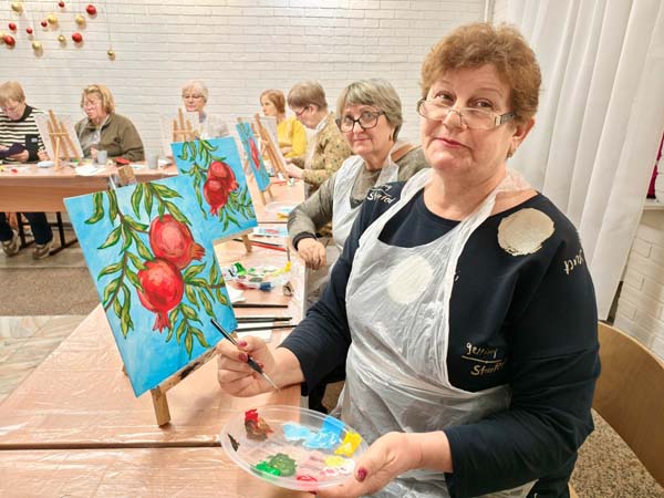 Каждый месяц талантливые участницы собираются в художественной студии Дворца, чтобы вместе погрузиться в мир живописи под чутким руководством Марины Юрьевны Зыковой. И на очередном мастер-классе они изображали гранат — яркий символ плодородия, изобилия и жизненной силы.