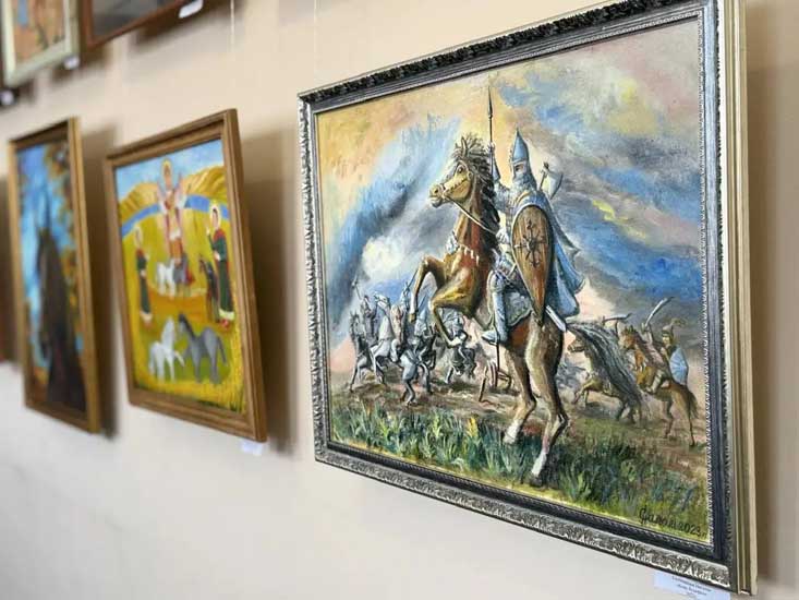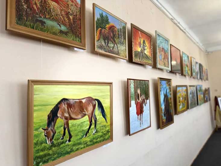 На выставке представлены работы объединения свободных художников «Сибирские просторы»: Ираиды Зиновьевой, Владимира Панина, Галины Шулиной, Анны Чуевой, Натальи Саломыкиной, Дины Кишко и других. Эти талантливые художники мастерски передают красоту и грацию лошадей.