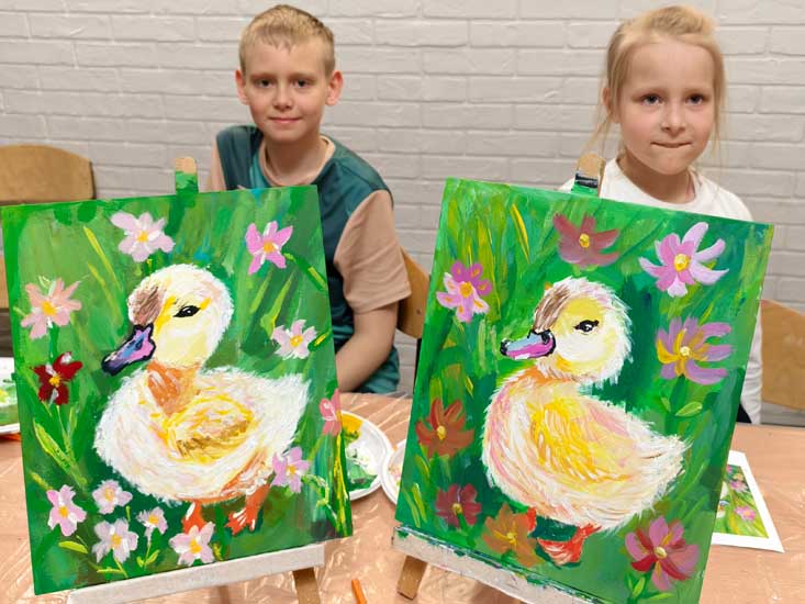 В нашей студии не бывает скучно! На новом мастер-классе уютно расположились участники всех возрастов и начали творить! Вместе рисовали очаровательного утёнка, изучали сложные оттенки и разные приемы работы с акрилом.