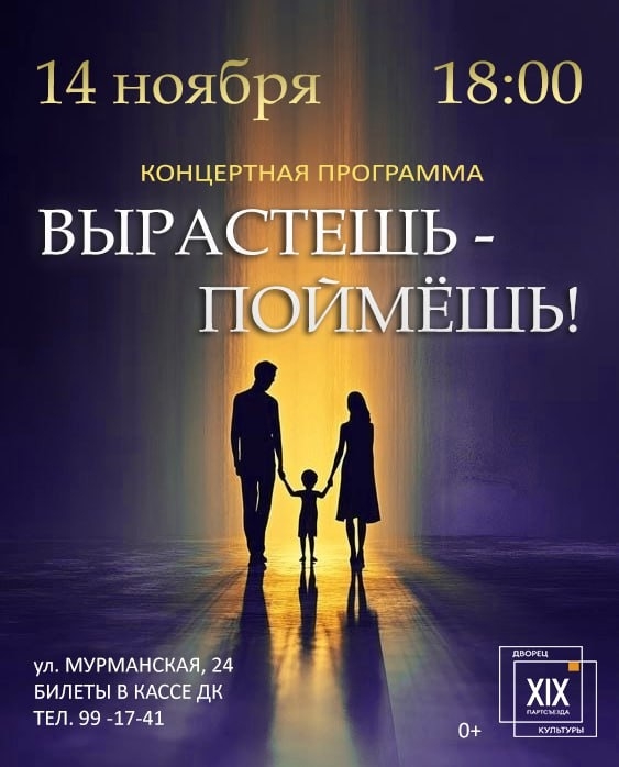 14.11.2025г. в 18:00 в МАУ «МКДК Орджоникидзевского района», СП ДК им. XIX Партсъезда, ул. Мурманская, 24, состоится концертная программа «Вырастешь-поймешь!» посвящённая Дню отца и Дню матери.