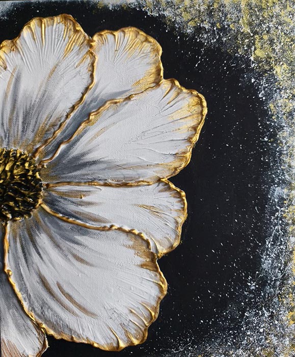 Под чутким руководством опытного педагога-художника участники освоят технику создания объемного цветка, использование в работе текстурной пасты, основы работы с акриловыми красками и «жидким» золотом, а также применят в выполнении картины такие приемы как «набрызг» и «штамп».