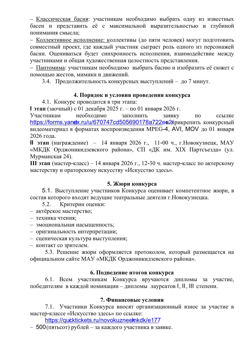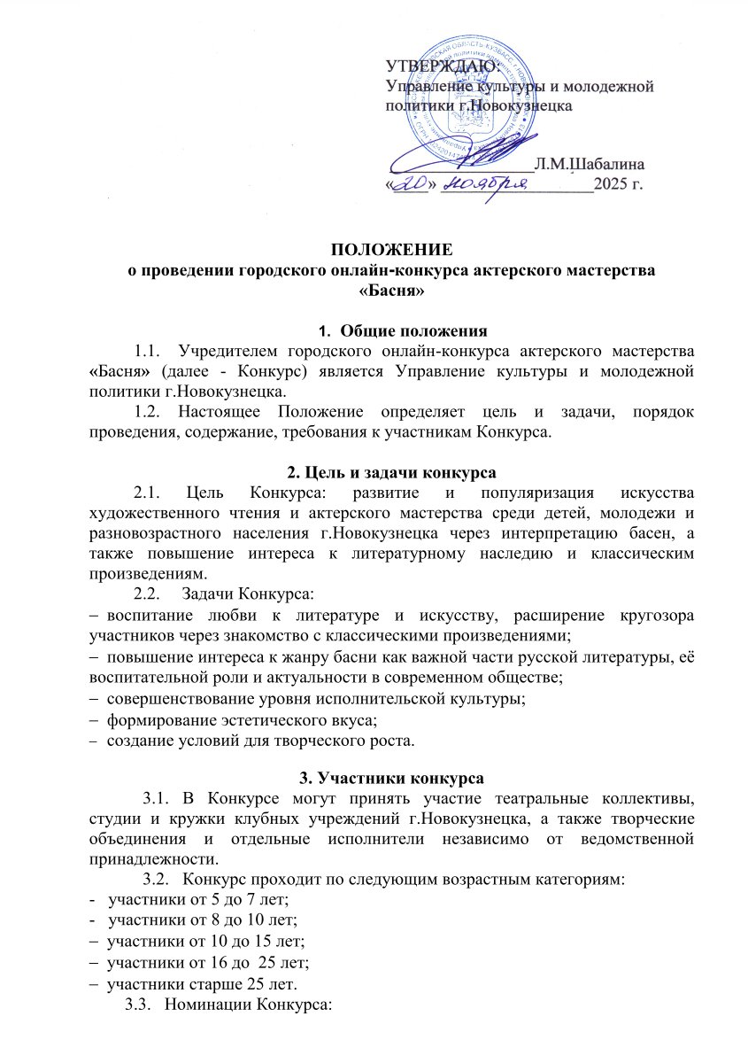 ПОЛОЖЕНИЕ о проведении городского онлайн-конкурса актерского мастерства «Басня»
