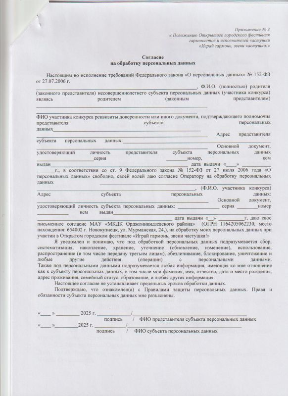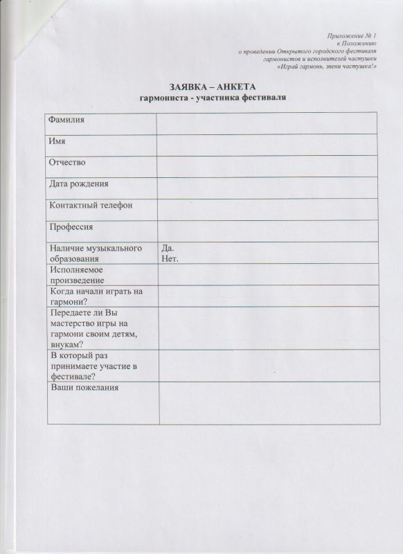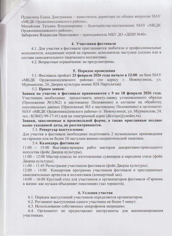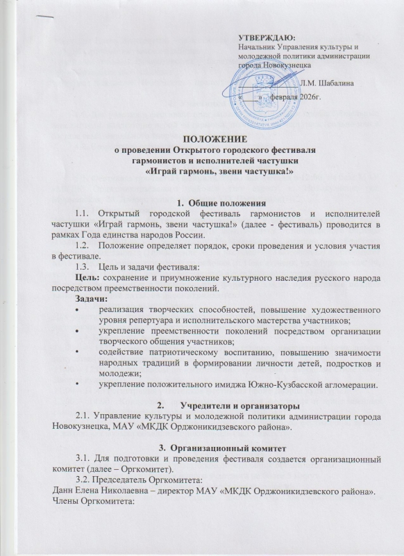 Положение о проведении Открытого городского фестиваля гармонистов и исполнителей частушки "Играй гармонь, звени частушка" 2026 год