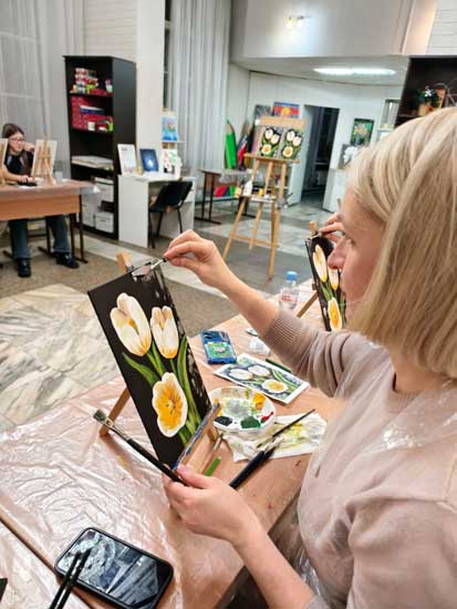 Рисовать — это не просто увлечение, это целый мир радости и вдохновения! На новом мастер-классе по акриловой живописи в студии Дворца культуры участники попробовали запечатлеть белые тюльпаны. И хотя работа не всегда была лёгкой, каждый смог добиться удивительного реализма!