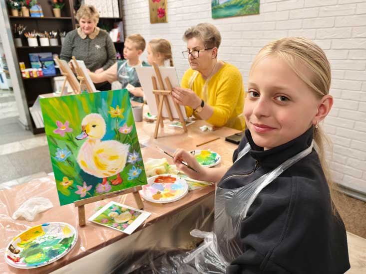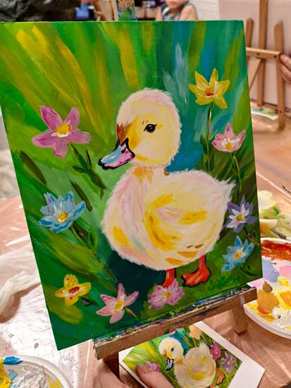В нашей студии не бывает скучно! На новом мастер-классе уютно расположились участники всех возрастов и начали творить! Вместе рисовали очаровательного утёнка, изучали сложные оттенки и разные приемы работы с акрилом.