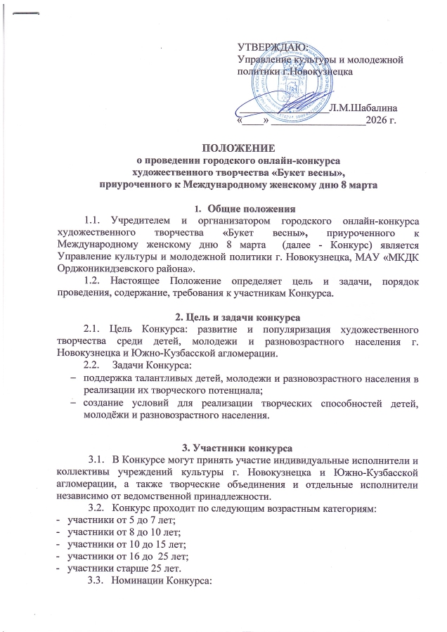 Положение о проведении городского онлайн-конкурса художественного творчества "Букет весны", приуроченного к Международному женскому дню 8 марта