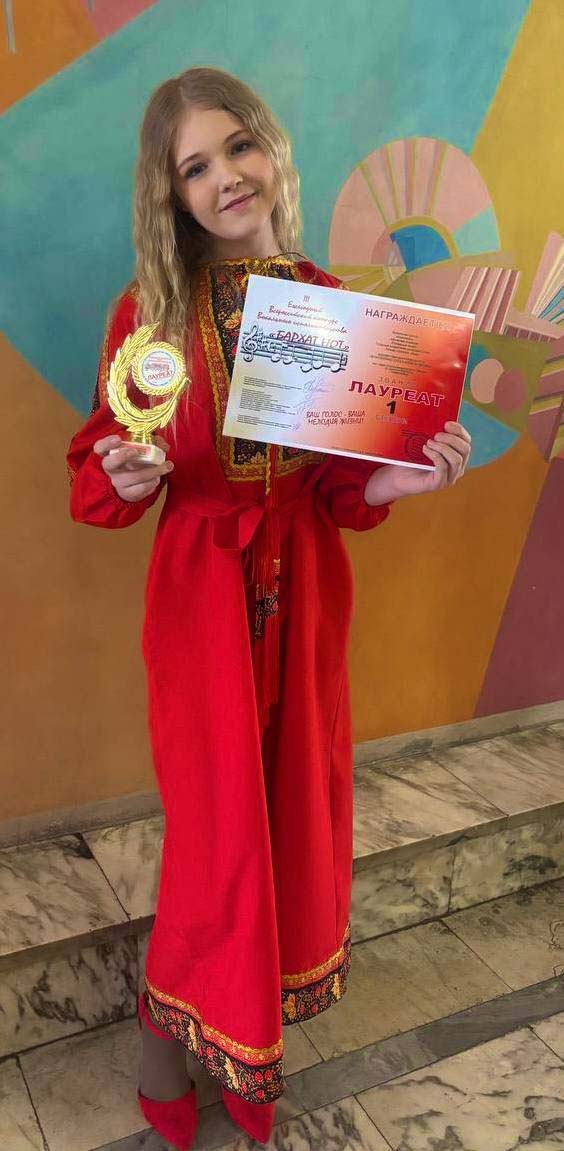 Поздравляем Абрамову Альбину с победой в III Ежегодном Всероссийском конкурсе вокального исполнительства «Бархат нот»!!!🌟🌟🌟